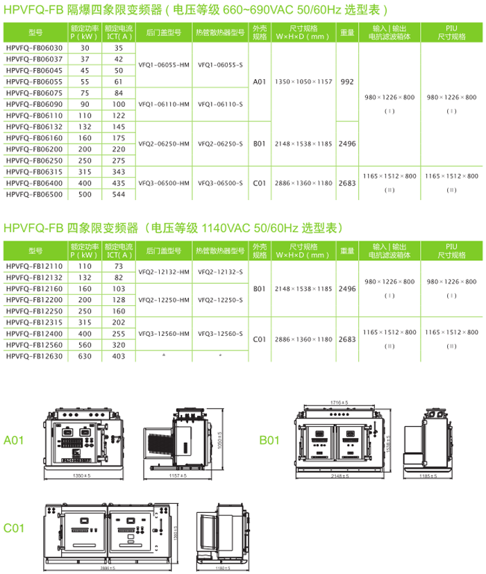 HPVF-FB隔爆兼本安型變頻器以全新的設(shè)計(jì)思路,將變頻、矢量控制、隔爆及本質(zhì)安全等技術(shù)相結(jié)合,具有多種控制模式、低速高轉(zhuǎn)矩等特性,可四象限運(yùn)行,具有能量回饋功能,節(jié)能效果明顯。主要適用于煤礦井下或露天礦山、選煤廠等有爆炸危險場所的大負(fù)荷設(shè)備軟起動、軟停車控制。